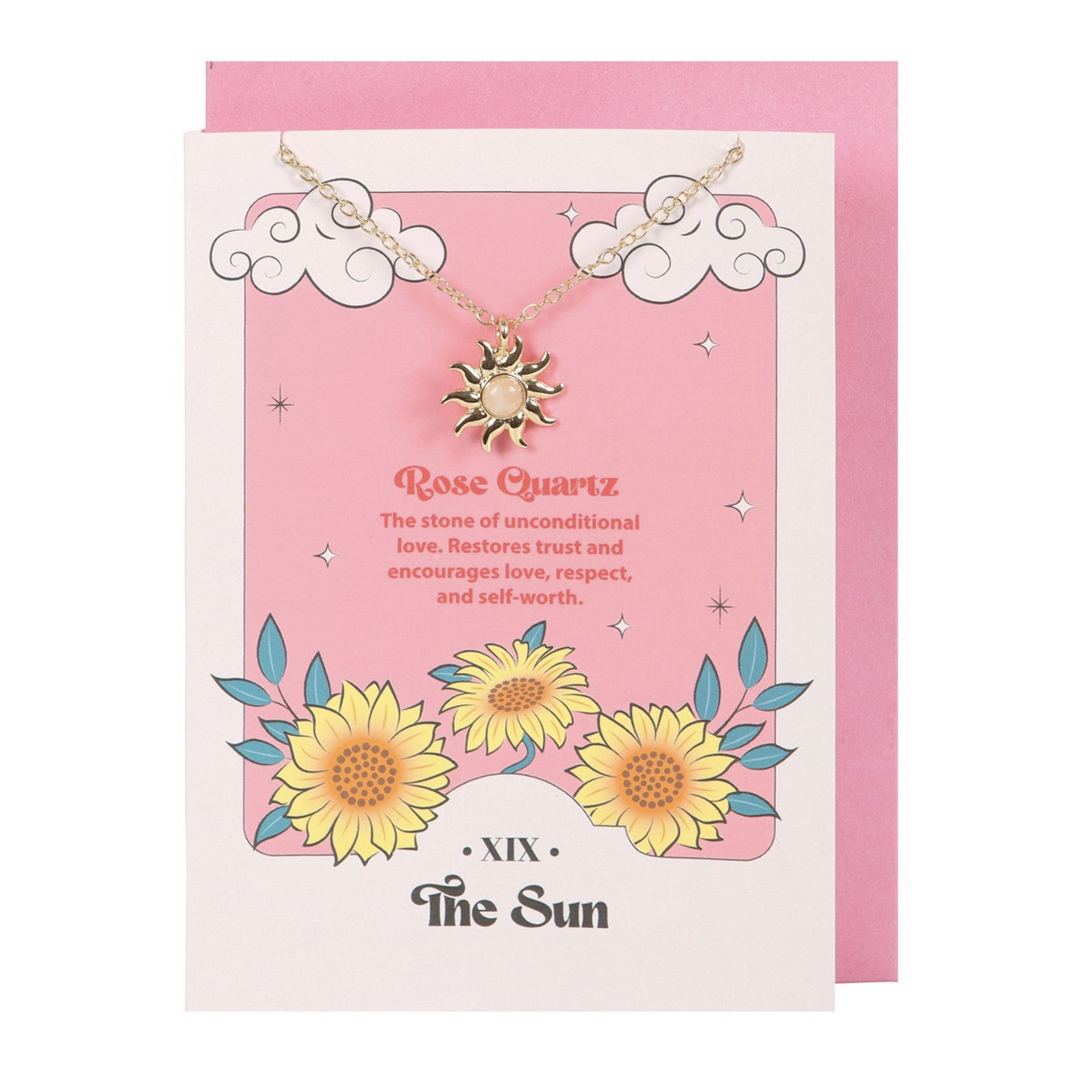 Dokonalý dárek pro vyjádření vaší lásky a vděčnosti. Náhrdelník z nerezové oceli je doplněn přívěskem ve tvaru slunce s růženínem. Je doplněn přáníčkem s motivem Slunce a textem popisujícím účinky růženínu: „Kámen bezpodmínečné lásky. Obnovuje důvěru a podporuje lásku, respekt a sebeúctu". Součástí balení je i růžová obálka.