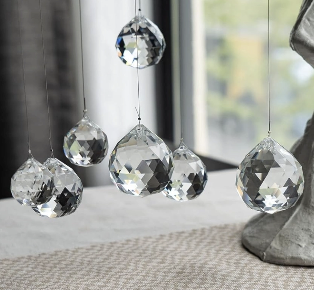 Závěsná křišťálová koule pro Feng Shui z čirého broušeného olovnatého skla pomáhá harmonizovat pomocí světla, jež se na desítkách broušených hran této koule rozzáří duhou všech barev světelného spektra. Světlo se rozptýlí do prostoru a vnese do něj novou a čistou energii. Zároveň prostor zbaví destruktivní energie, harmonicky usměrňuje chaotické toky energie, do prostoru tak vplývá radost, pocity štěstí a konstruktivní stimulace.