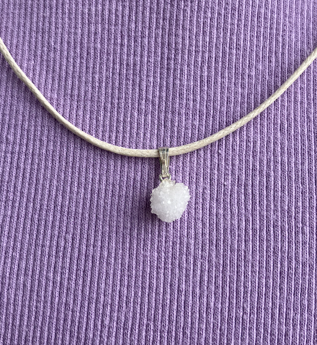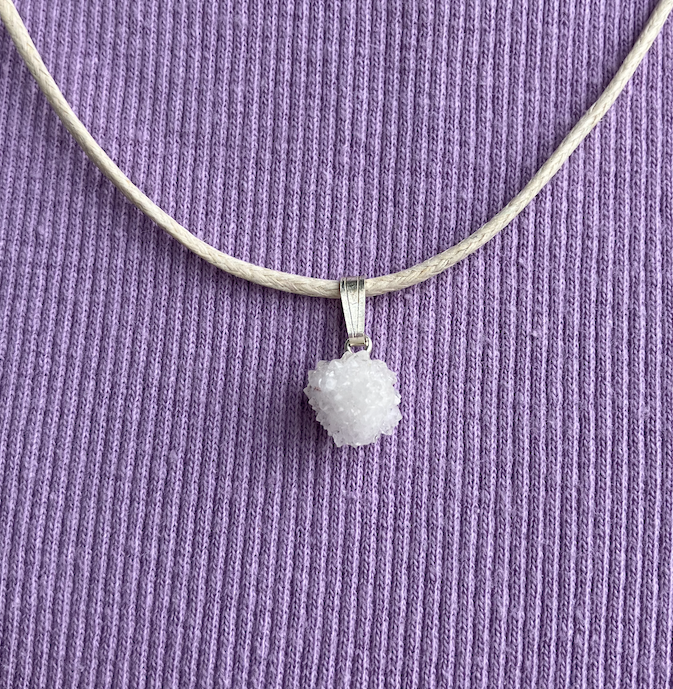 Materiál: Přírodní křišťál z Brazílie, malá drúzička připomínající vzhled sněhové kuličky. Váha cca 1,1gr. Rozměr cca 1,7cm i s úchytem. Očko z pravého stříbra (ryzost Ag925). Bavlněný provázek béžový.