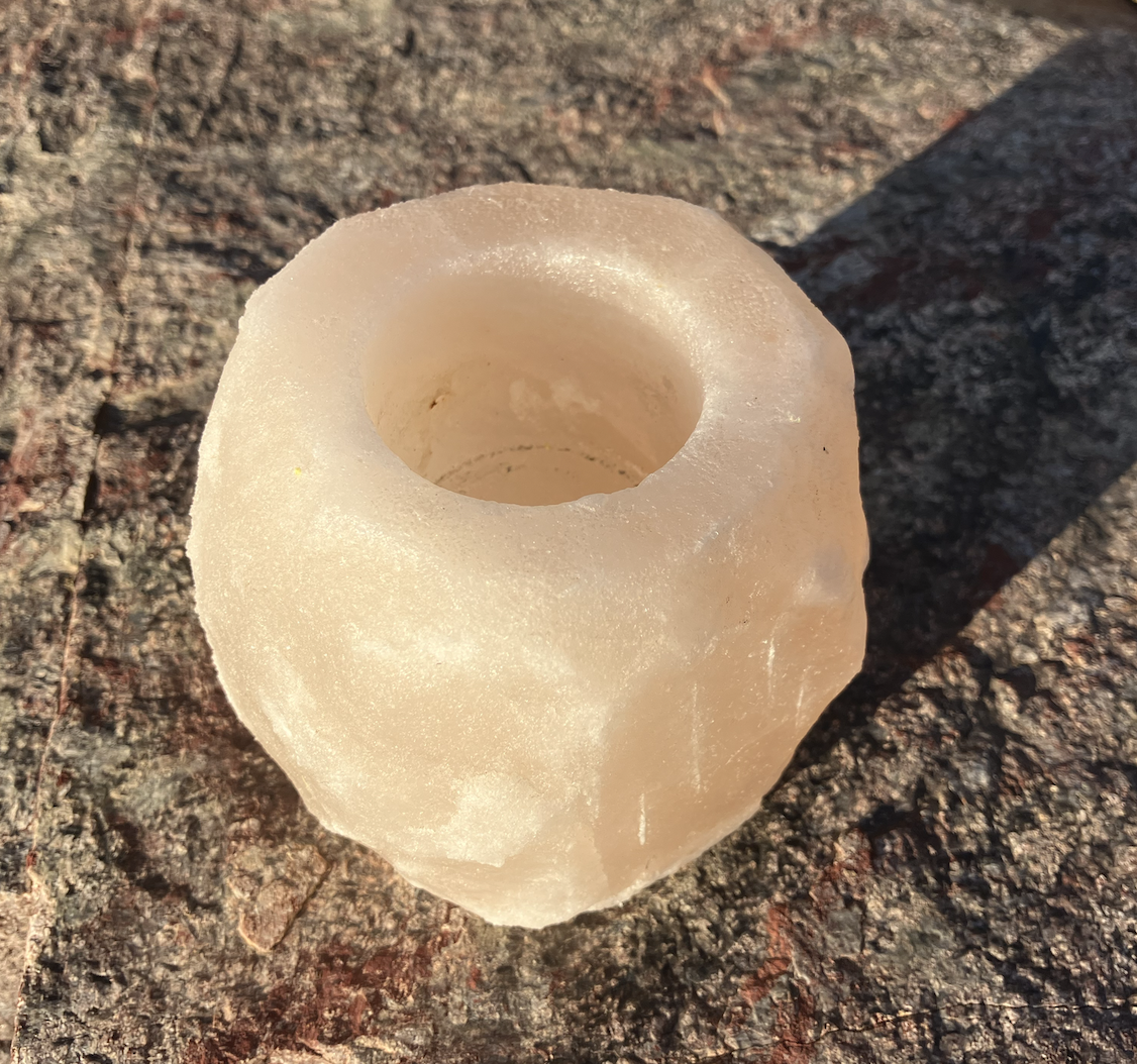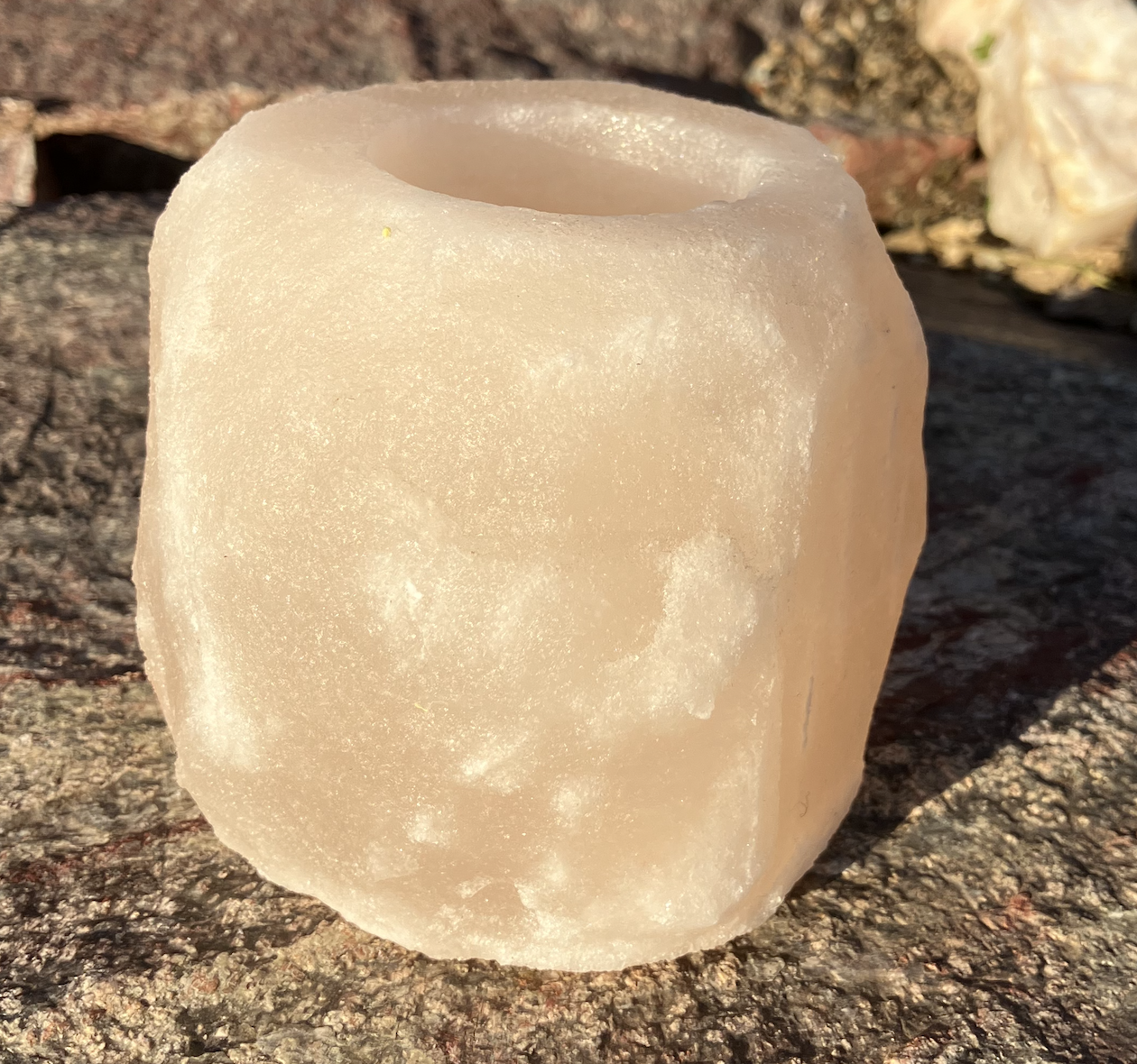 Solná lampa na čajovou svíčku z opracované himalájské soli. Plamen svíčky uvnitř solného krystalu, vydává příjemné světlo a navozuje příjemnou atmosféru.
